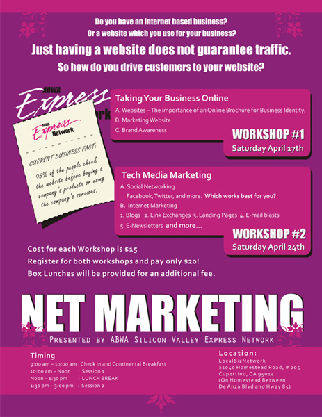 LocalBizNetwork specializes in Web Design, Custom Web Applications, Mobile Websites, Internet Marketing, Smart Phone Apps, E Newsletters, Social Network Marketing and much more. We serve San Jose, Santa Clara, Silicon Valley, SF Bay Area and the whole of California. We have done projects for clients in Arizona, Texas, Oregon, Florida, Boston, New York and even crossed borders and done projects in the UK, Tobago, India, Japan, France, Mexico, Belgium, Australia, Africa and the Middle-East.